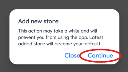 You’ll be prompted with the dialog. To continue, tap “Continue“, otherwise, tap “Close“