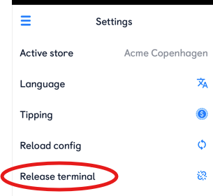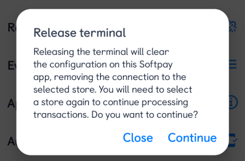 Releasing a terminal will release any terminal IDs which has been connected to the current app installed on a device. For example this should be used when a device needs to be replaced, as this will make the terminal ID provided by the acquirer available to use on a new installation.