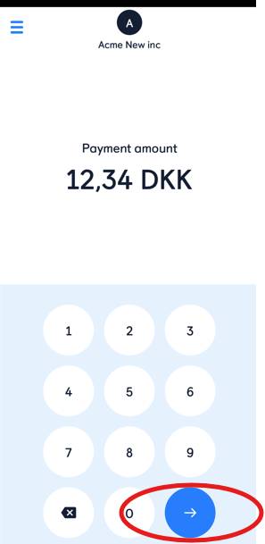 Enter the purchase amount using the keyboard and tap the button with the “→“ icon.