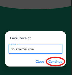 The cardholder can choose to receive the receipt via email by clicking on a “Receipt“ button