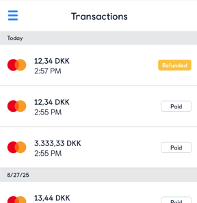 Enter the refund amount using the keyboard and tap the button with the “→“ icon.