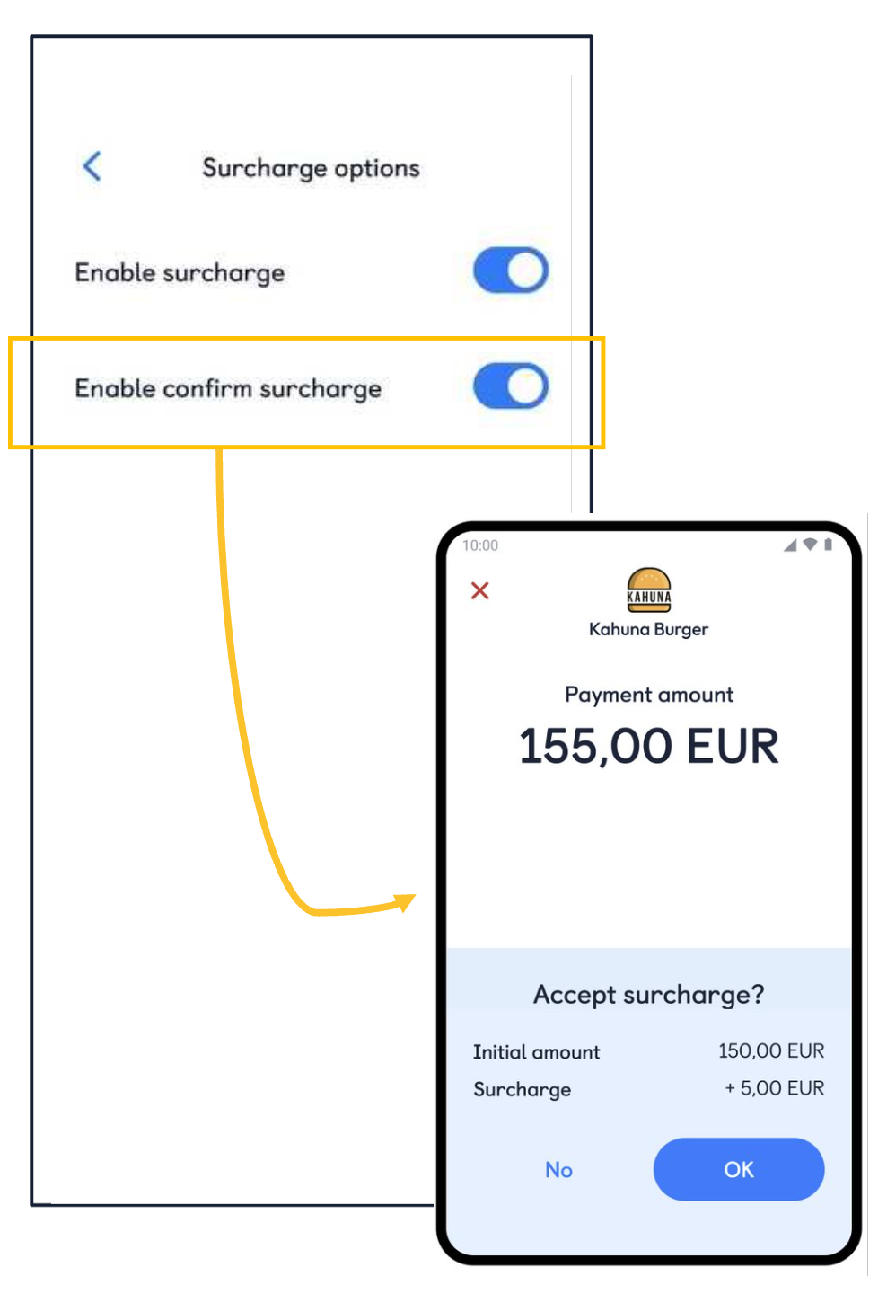 - Stand-alone: Surcharge is enabled in app settings.
